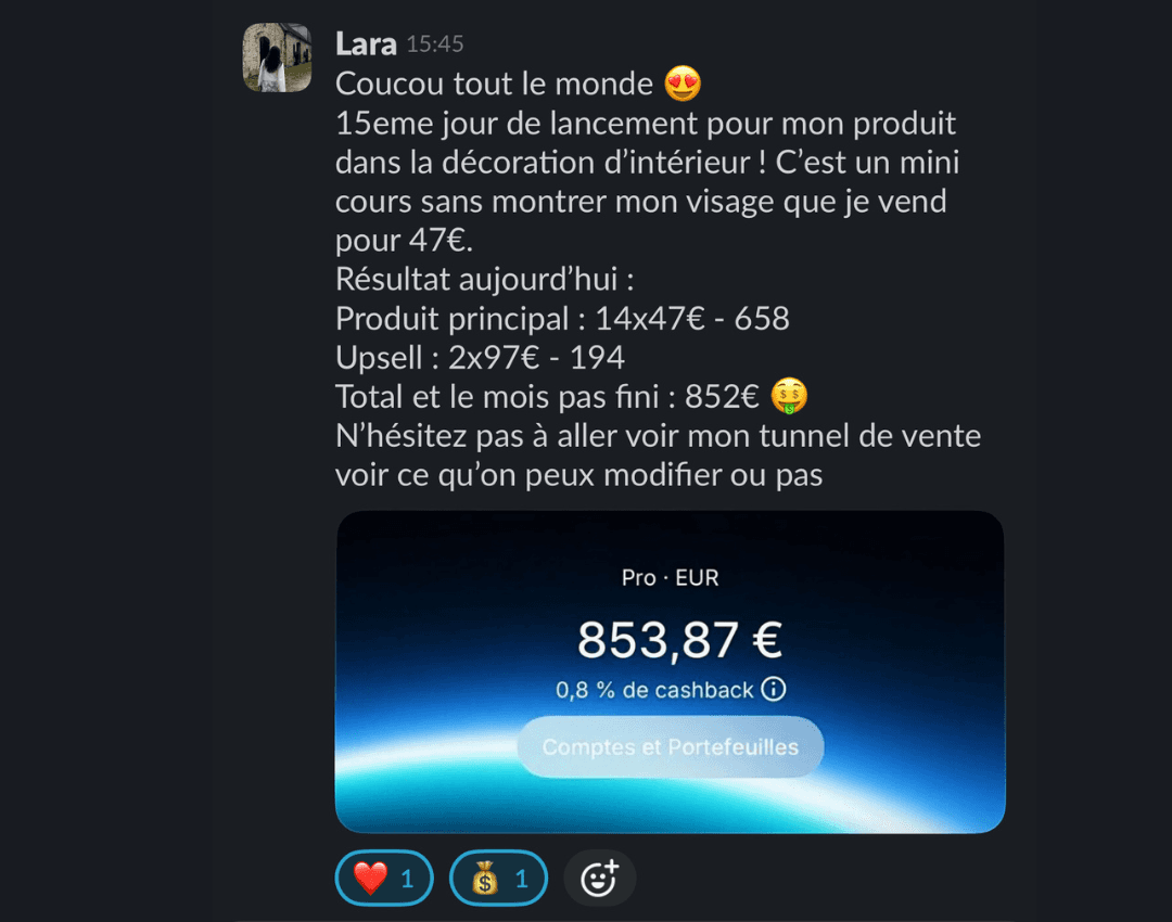 Tu auras lancé ton premier produit digital IA, il commencera à générer des ventes même pendant que tu dors. Et tu commenceras à goûter à la sérénité d’un complément de revenus en ligne régulier, qui ne dépend ni d’un patron ni d’un horaire.